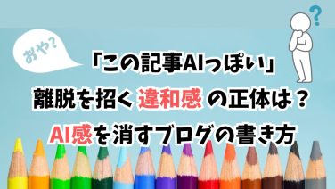 ブログ運用 AIっぽい記事は読まれない!生成AI感を消すブログの書き方 最近、ブログを読んでいて「なんだか機械っぽいな」「人間味がないな」と感じること、ありませんか?私自身、あるブログを読んでいたところ、「生成AIで作ったんだろうな」と何となく頭をよぎった瞬間、読むのをやめてしまったことがあります。 どんなに言... 2025.07.10 ブログ運用